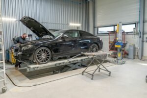 En effet, dans l'atelier, les techniciens y opèrent sur des postes de travail sur mesure. Ils sont formés aux opérations complexes de redressage des structures et de réalignement d'éléments abîmés. Tandis que les deux cabines de peinture Omia y sont équipées d’un éclairage à LED pour des finitions de grande qualité. Elles sont également respectueuses des normes environnementales.
