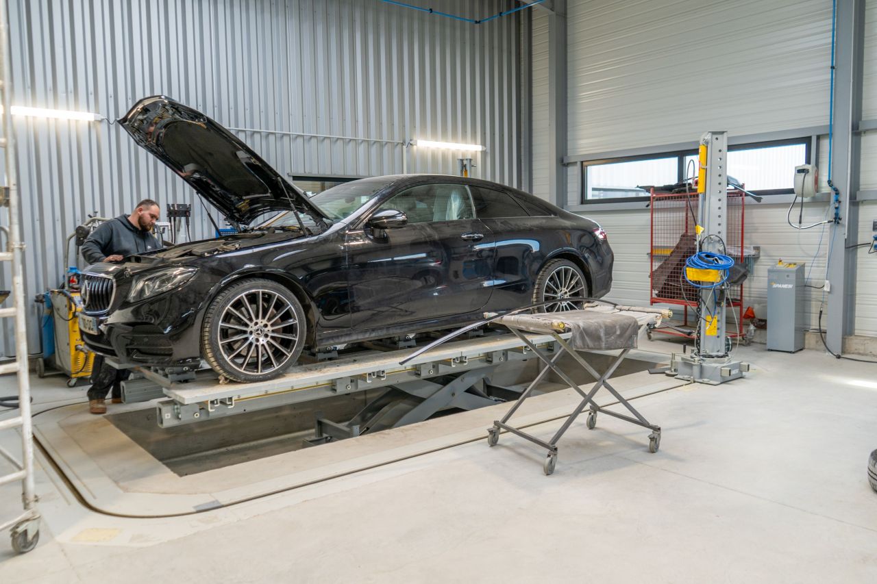 En effet, dans l'atelier, les techniciens y opèrent sur des postes de travail sur mesure. Ils sont formés aux opérations complexes de redressage des structures et de réalignement d'éléments abîmés. Tandis que les deux cabines de peinture Omia y sont équipées d’un éclairage à LED pour des finitions de grande qualité. Elles sont également respectueuses des normes environnementales.