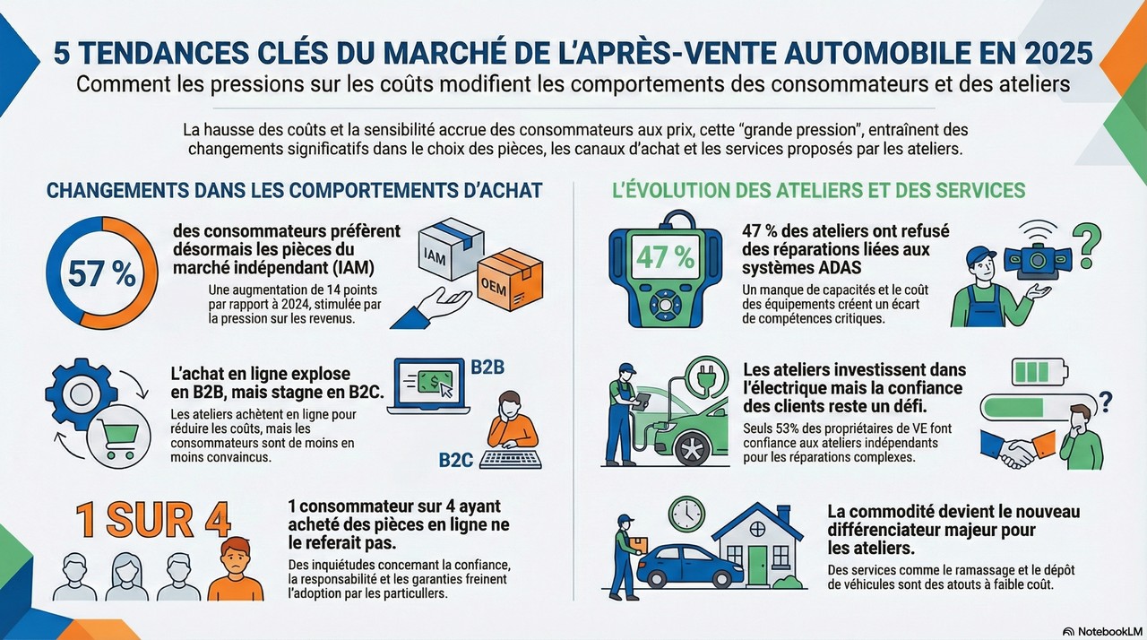 Face à ce contexte, les automobilistes modifient sensiblement leurs comportements d’achat. En effet, 57 % des consommateurs interrogés privilégient désormais les pièces d'équipementiers (IAM) plutôt que celles des constructeurs (OE). Soit une progression spectaculaire de 14 points par rapport à 2024.